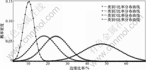 区域中的边缘比率能够从一定程度上反映物体的轮廓。为了说明这点,本文针对文献[14]中的数据库进行统计。统计时,将整张图像视为检测区域,计算包含人体轮廓图像中4类边缘所占的比重。图7所示为了统计结果,为了便于观察,对每一类边缘用正态分布进行拟合。