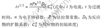 用恒电流阶跃法可以判断Cr3+离子在电沉积过程中是否经历了前置化学转化反应,根据Sand方程 式[14-15]