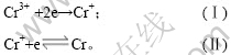 由以上分析可知,Cr3+在阴极电沉积受电化学步骤控制,分2步进行放电:第1步得到2个电子,第2步得到1个电子。Cr3+在阴极上的还原反应历程为: