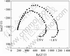 图8 Cr3+电沉积的交流阻抗复数平面图
