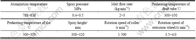 表1 2A12铝合金喷射沉积连续挤压参数