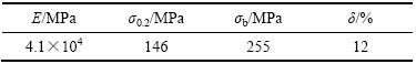 试验材料为MB8变形镁合金,该镁合金强度中等,且塑性较好,其化学成分(质量分数,%)和力学性能分别如表1和2所列。