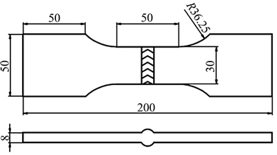 采用日本SHIMADZU AG-X 250 kN型万能试验机在室温的条件下进行拉伸试验,拉伸速率为2 mm/min。借助JSM-6360LA扫描电镜(SEM)观察分析接头拉伸断口的微观形貌特征,从而探究MB8镁合金焊接接头的拉伸断裂机制。