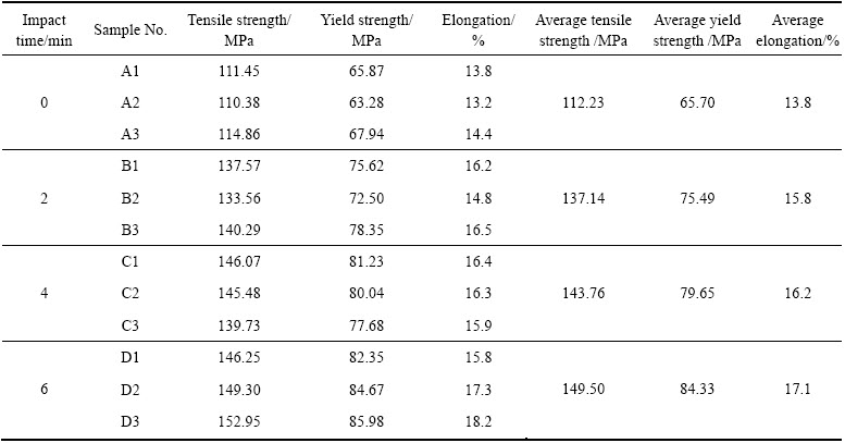 Table 5 Mechanical properties of welded joints under different impact parameters