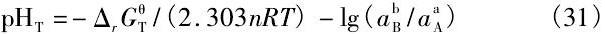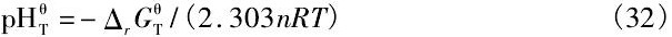 式中, ΔrGTθ为标准状态下反应吉布斯自由能变化, J;ΔrGT为反应吉布斯自由能变化, J;R为摩尔气体常数, J·mol-1·K-1;T为温度, K;n为H+的化学计量数。
