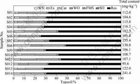 Fig. 2 Total contents and chemical fractions of Pb in topsoil
