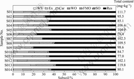 Fig. 3 Total contents and chemical fractions of Pb in subsoil