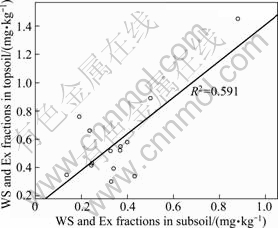 Fig. 5 Correlation between SWE in topsoils and in subsoils