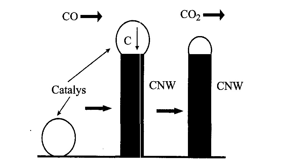 在这个模型中, 生成碳纳米线时原始反应物石墨首先与O2 或吸附在石墨试样中的水在高温下发生反应: