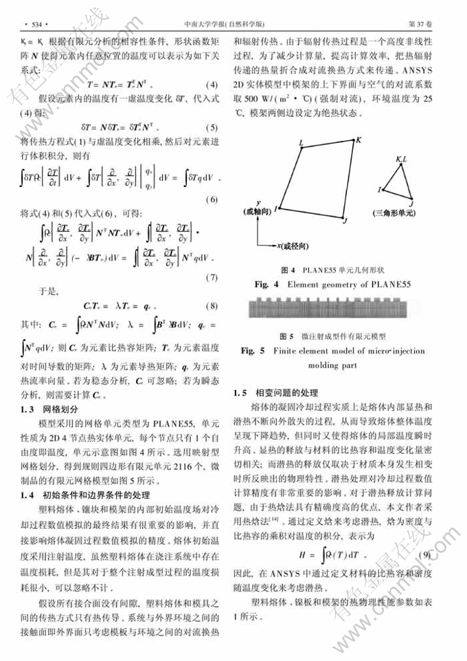 考虑结晶潜热的LDPE微结构件注射成型模内温度场