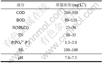 表1 试验污水成分