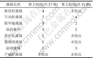 在第2和第3阶段分别分离出单菌株17株和11株。结合细菌的主要生理生化指标[7]和16S rDNA测序鉴定结果见表2。