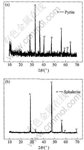 在日本理光D/max-rB转靶X射线衍射仪上对实验用黄铁矿和闪锌矿进行测定分析。