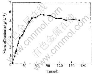在本实验条件下培养的诺卡氏菌, 隔一定时间取出100mL培养液, 在16000r/min下离心分离10min后测定细菌的湿质量, 绘制的诺卡氏菌生长曲线如图2所示。 可以看出, 诺卡氏菌经过很短的延滞期便进入了指数生长期, 大约72h后该菌进入稳定生长期。 为了保证实验用菌体既有足够的活性, 又可获得足够的数量, 实验中所使用的诺卡氏菌为生长120~160h范围内的菌体。