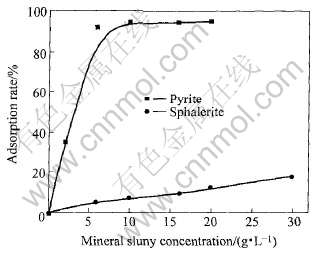 Fig.4 Influence of mineral slurry concentration on adsorption process