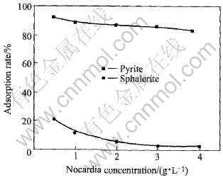 Fig.6 Influence of Nocardia concentration on adsorption process