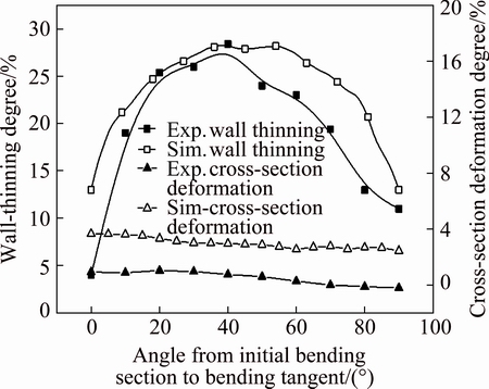. Table 2 shows the simulation conditions. Figure 4 shows that the numerical results can reveal the bending characteristics. The maximum deviation is less than 15%. The unconformity is mostly induced by the property variations, friction conditions and instability of loading conditions such as pressure die movements.