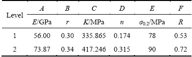 The Plackett-Burman method of DOE is used to find out the significant noise factor about material properties. Table 3 shows the levels of 5052O Al-alloy material parameters such as elastic modulus E, Poisson ratio v, strength coefficient K, strain-hardening exponent n, initial yield strength σ0.2, normal anisotropy exponent R. As shown in Fig. 6, by direct analysis and statistic analysis, both n and R are the major noise factors in the consequent robust optimization.