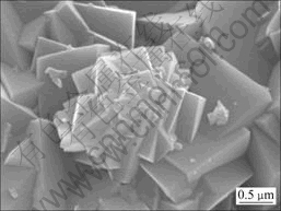 图9所示为铅黄铁矾渣的SEM像。由图9 可知,矾渣形貌为斜六面体粒子,是共生晶体,直径为0.5~ 2.0 μm。