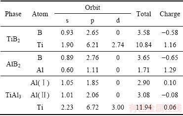 表2 TiB2、AlB2和TiAl3 的Mulliken电荷布居