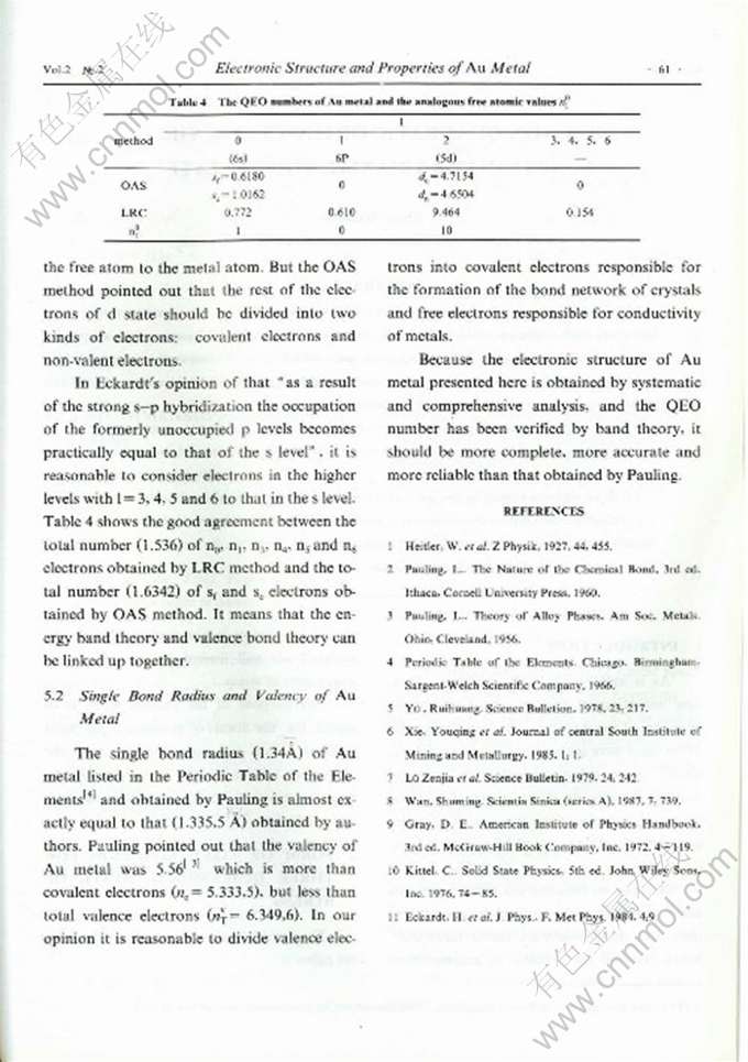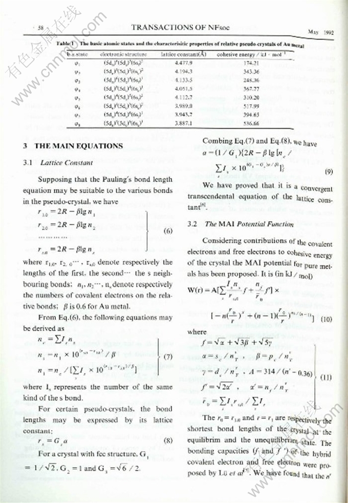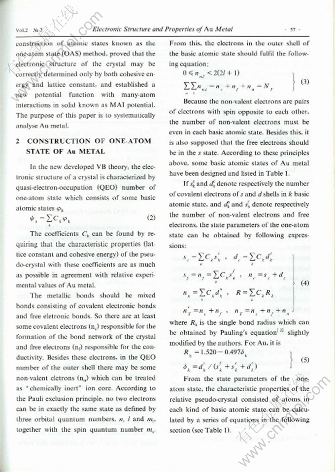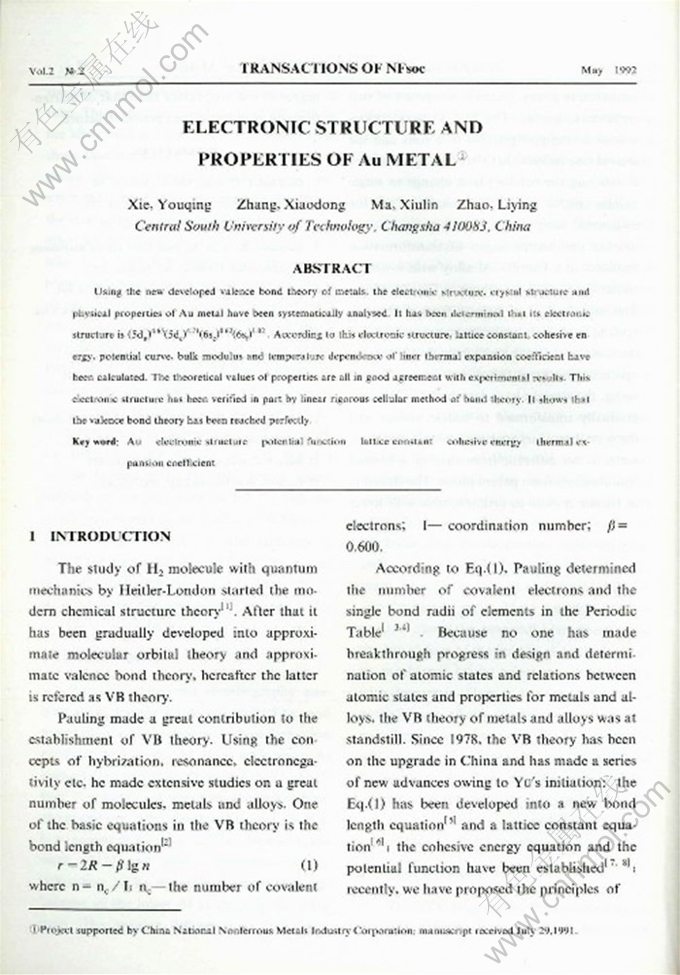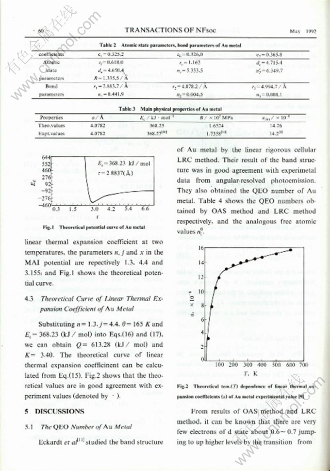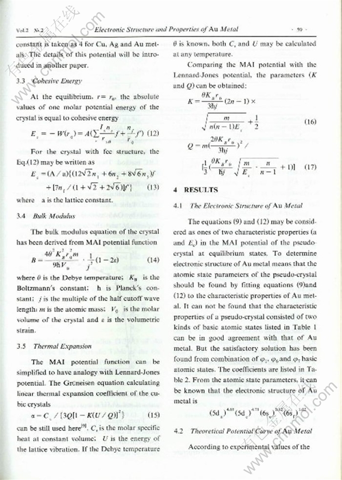 Key words:Au electronic structure ; potential function ; lattice constant ; cohesive energy; thermal expansion coefficient