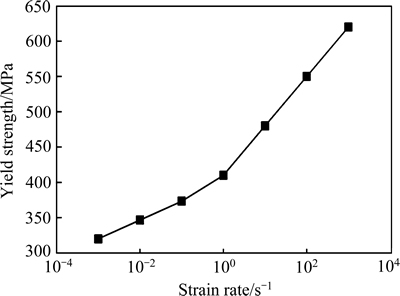 图3 不同应变率下普通低碳钢的屈服强度随应变率的变化曲线[17]