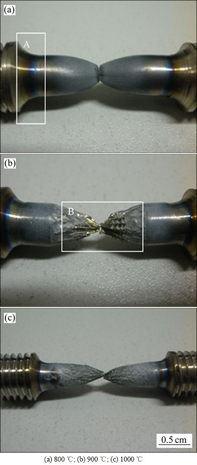 图6 不同温度下拉伸断裂试样宏观形貌