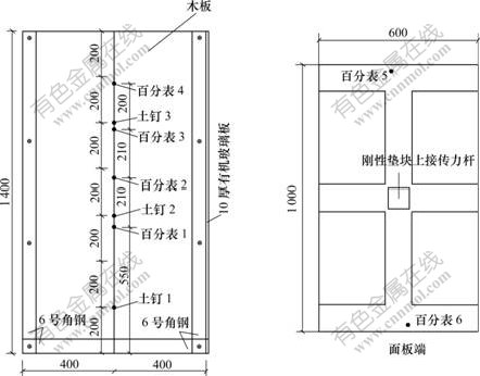 图1 模型箱尺寸及测试仪表布置