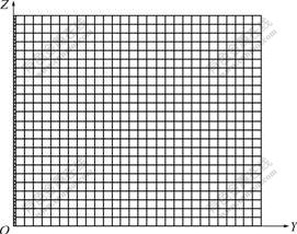 动力计算有2种方式:一是显式求解,二是隐式求解[15]。当出现塑性区时,一般采用后者。对土钉支护进行有限元计算时常采用平面应变模型,如图3所示。在计算时,底部采用固定边界,右侧则为Y方向固定、Z方向可动的半固定边界。模型采用矩形网格,均为四边形单元,面板单元为60个,土体单元为672个;每根土钉单元为20个,共计60个。
