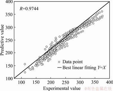 Fig. 11 Correlation between predicted value and experimental value of constitutive model