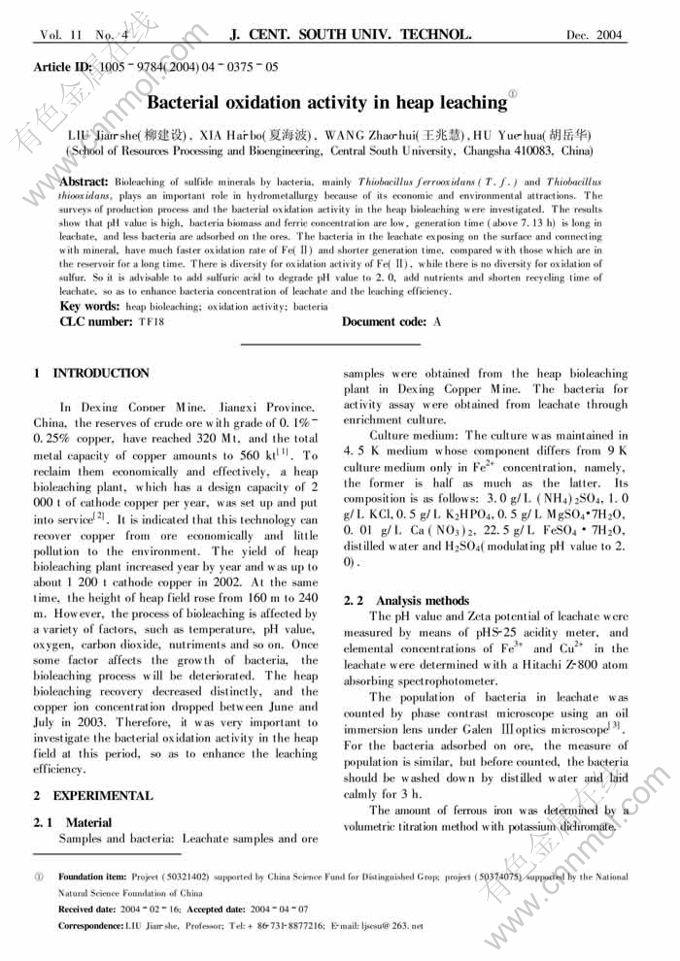 论文作者:柳建设 夏海波 王兆慧 胡岳华