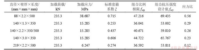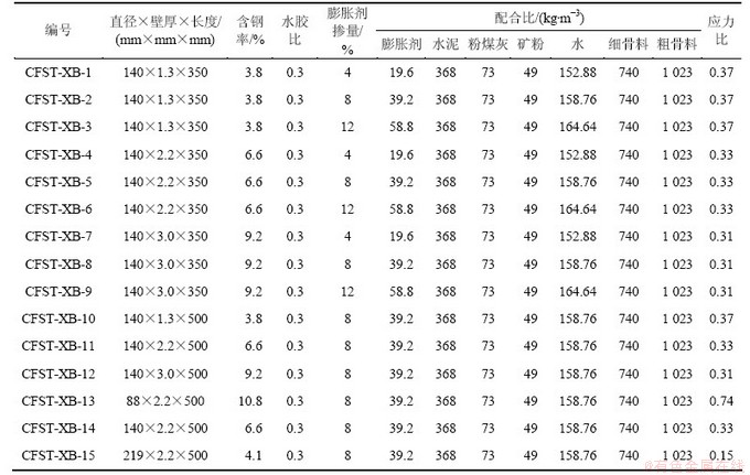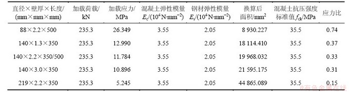 表3 混凝土配合比、钢管型号及应力比