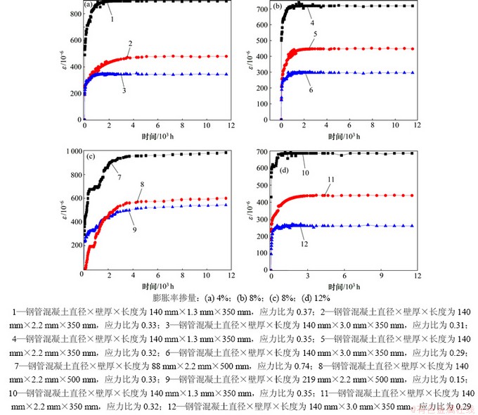 膨胀剂掺量和应力比对钢管混凝土徐变性能的影响