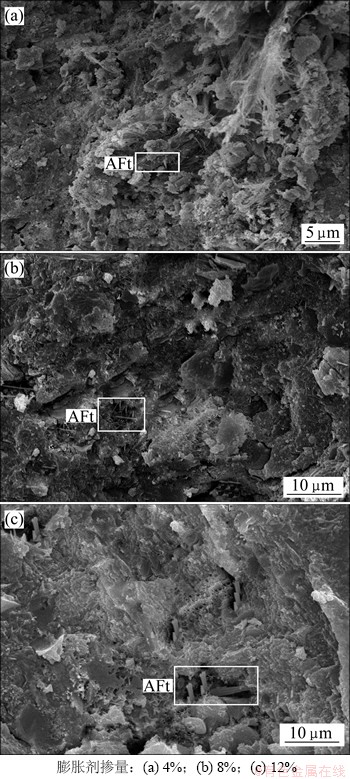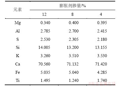表4 不同膨胀剂掺量时各种元素的质量分数