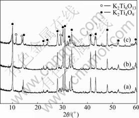 Fig.2 XRD patterns of samples prepared under different molar ratios of K2O to TiO2: (a) 1:3; (b) 1:3.5; (c) 1:4