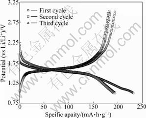 Fig.6 First three charge-discharge curves of TiO2-B (24 h)