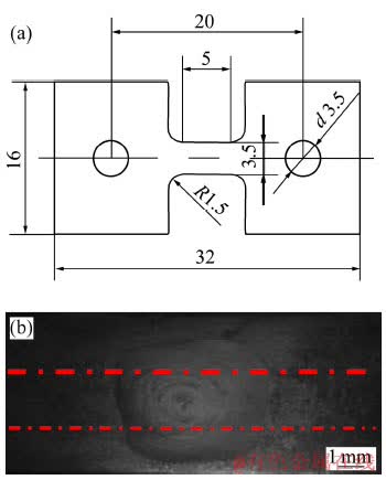 Fig. 1 Dimensions(a) and position(b) of tensile specimens (Unit: mm)