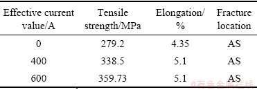 Table 2 Tensile properties of friction stir welding joints with different pulse current carrying capacity