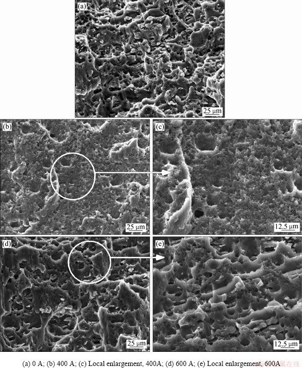2.3.3 脉冲电流对拉伸试样断口形貌的影响