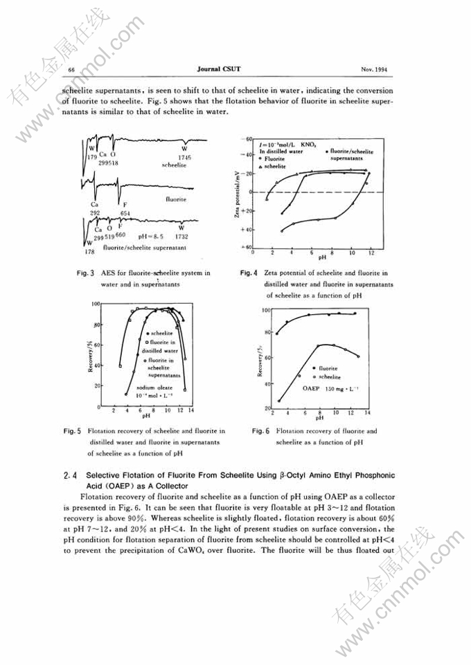 Key words:flotation behavior; fluorite; scheelite; mineral species; electrokinetlc property