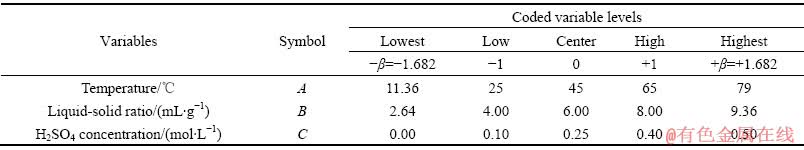 表2 烟灰浸出过程CCD因素水平表