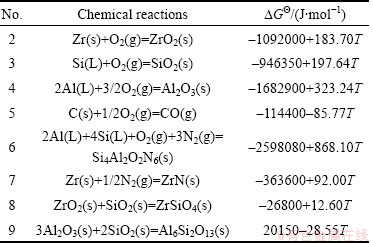 Table 2 Gibbs free energy changes of formation of some compounds in ZrO2-Al2O3-SiO2-C-N2 system