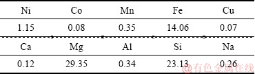 实验所用低品位红土镍矿,其来源于云南元江不同地表深度的红土镍矿,经干燥、破碎干磨混合均匀后过孔径150 μm的筛之后进行实验研究。通过对实验样品进行成分分析结果见表1。