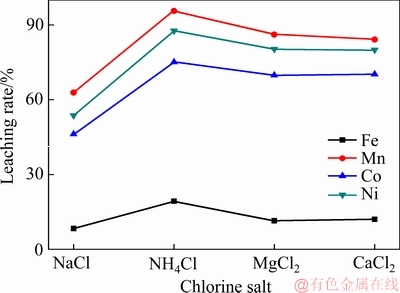 Fig. 3 Influence of different chlorine salt on leaching rate of metals