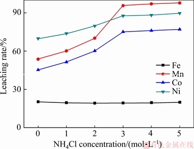 2.3 氯化铵浓度对有价金属浸出率的影响