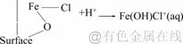 形成的配合物与溶液中的氢离子结合生成铁的可溶性配合物,最终实现在不增加酸浓度的条件下促进了针铁矿相的分解反应,其反应如下:
