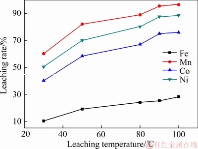 Fig. 6 Influence of leaching temperature on leaching rate of metals