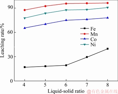 Fig. 7 Influence of liquid-solid ratio on leaching rate of metals