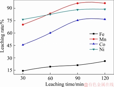 Fig. 8 Influence of leaching time on leaching rate of metals