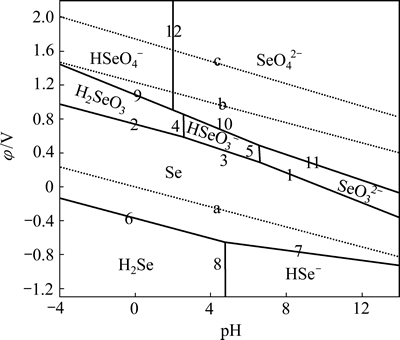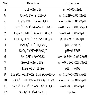 Table 3 Equilibrium reactions of Se-H2O2-H2O system and φ-pH equations at 298.15 K